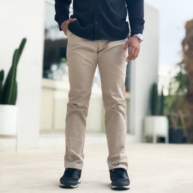 Celana warna cream juga cocok dipadupadankan dengan baju warna earth tone lainnya, seperti warna olive.